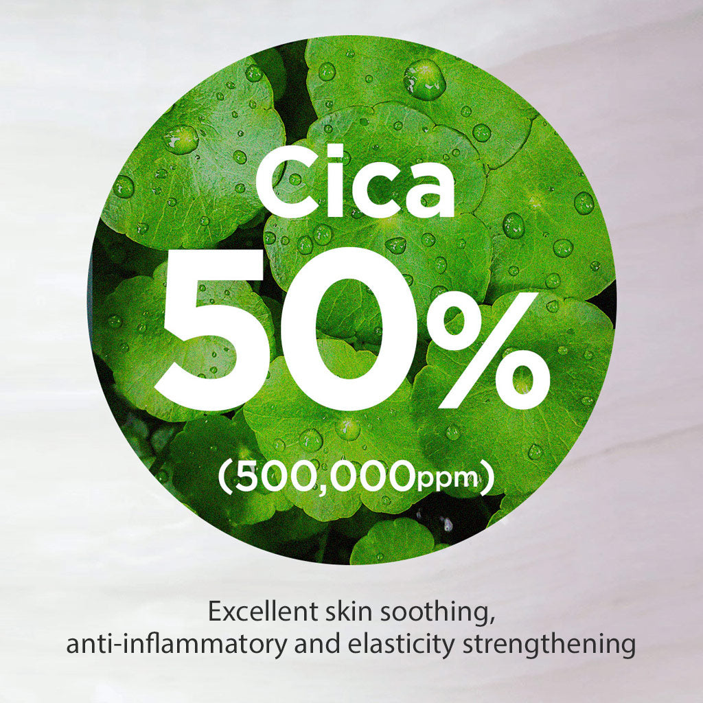 50% (500,000ppm)Centella Asiatica Extract : Excellent skin soothing, anti-inflammatory and elasticity strengthening