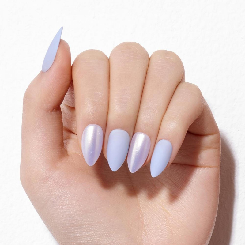 DASHING DIVA Magic Press Stiletto Glow Up Mani Pale Blue Shine MDR980ST