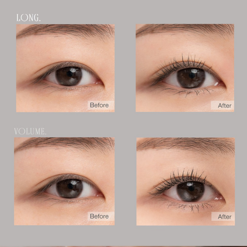 1. LONG You can make your eyelashes look longer by touching the edges of your eyelashes with the erected head of the brush.
