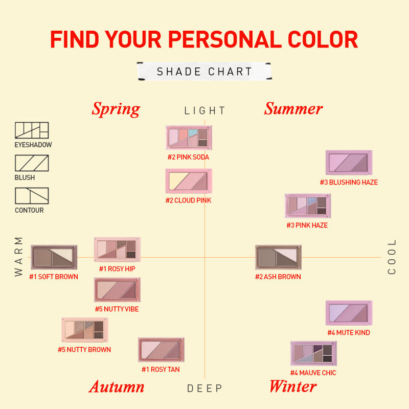 Explore a spectrum of looks, from everyday neutrals to vibrant colors, amplified by hidden colors - all tailored to your personal color. The more you experiment, the more diverse and exciting your makeup becomes.